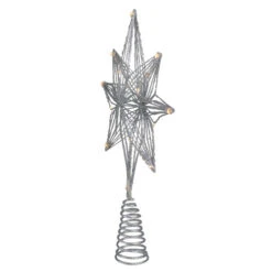 11″ Silver Lighted Tinsel Star Of Bethlehem Christmas Tree Topper – Clear Lights