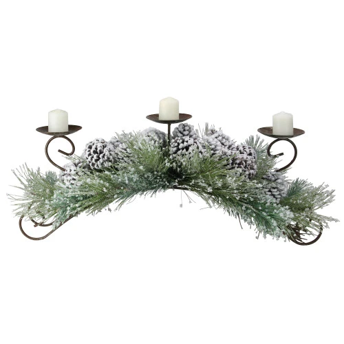 Northlight 30″ Green Frosted Pine Needle And Pine Cone Christmas Candle Holder