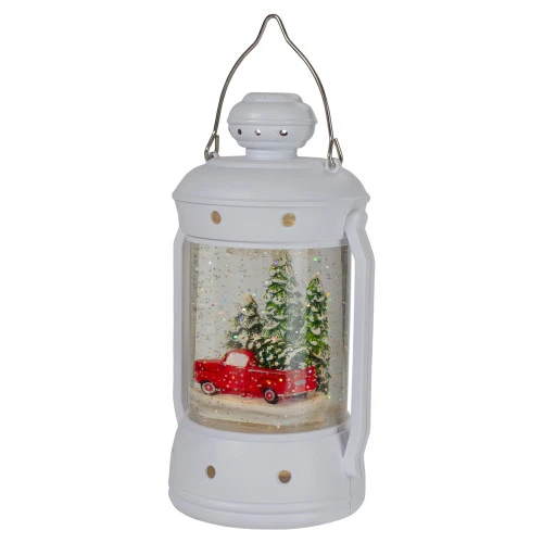 Northlight 9″ White Lantern Christmas Snow Globe With Red Truck And Trees