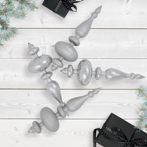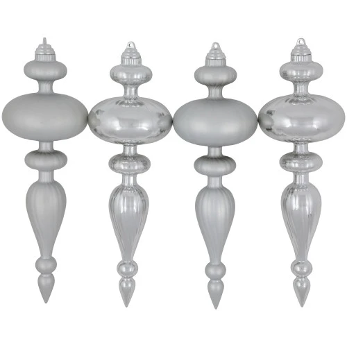 Set of 4 silver-tone Christmas finial ornaments