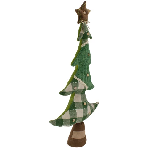 Green and tan buffalo plaid alternate with green knit up the tree