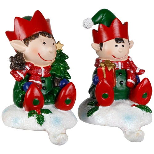 Northlight Festive Elves Christmas Stocking Holders – 5″ – Set Of 2