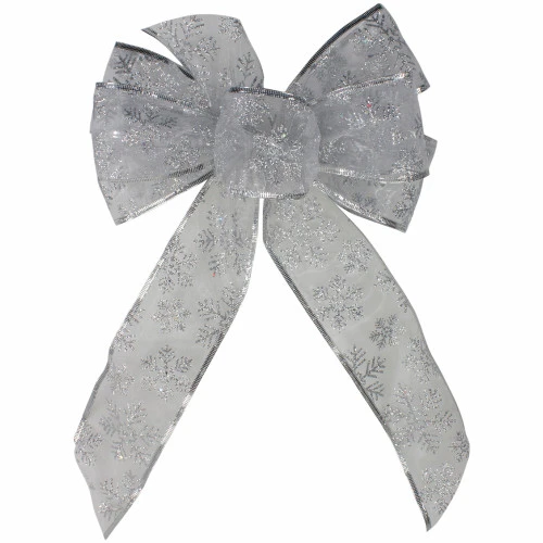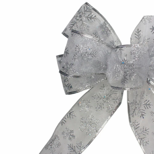 Sheer silver snowflake Christmas bow decorations